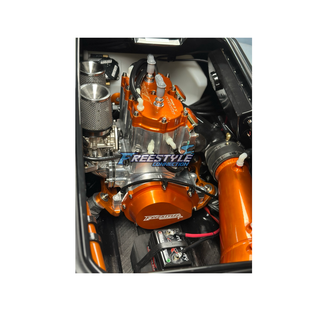 This was a no expense spared build. Titanium hardware, custom anodized everything, finely tuned and ready to fly! Titled and ready for immediate shipping. This is a one owner ski, please reach out to us for more details. Comes with everything pictured minus superflip bars.